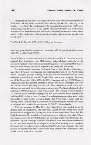 Article from and courtesy of German Studies Review - January 26, 2003